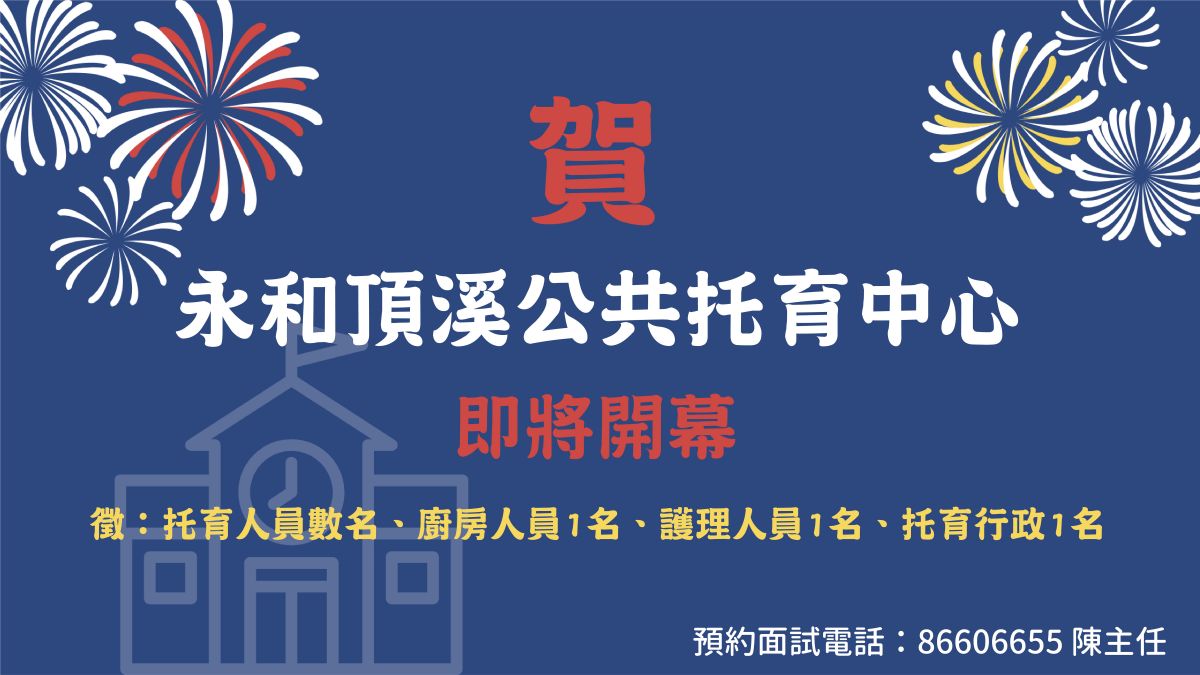 4.托育行政一名應徵程序:1. 發私訊留言:我要應徵***職位2. 來電預約面試時間:02-86606655 陳主任3. 加入團隊#環境優美#工作穩定#福利不缺#理念正確